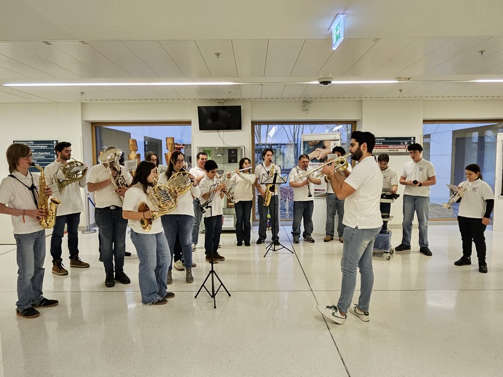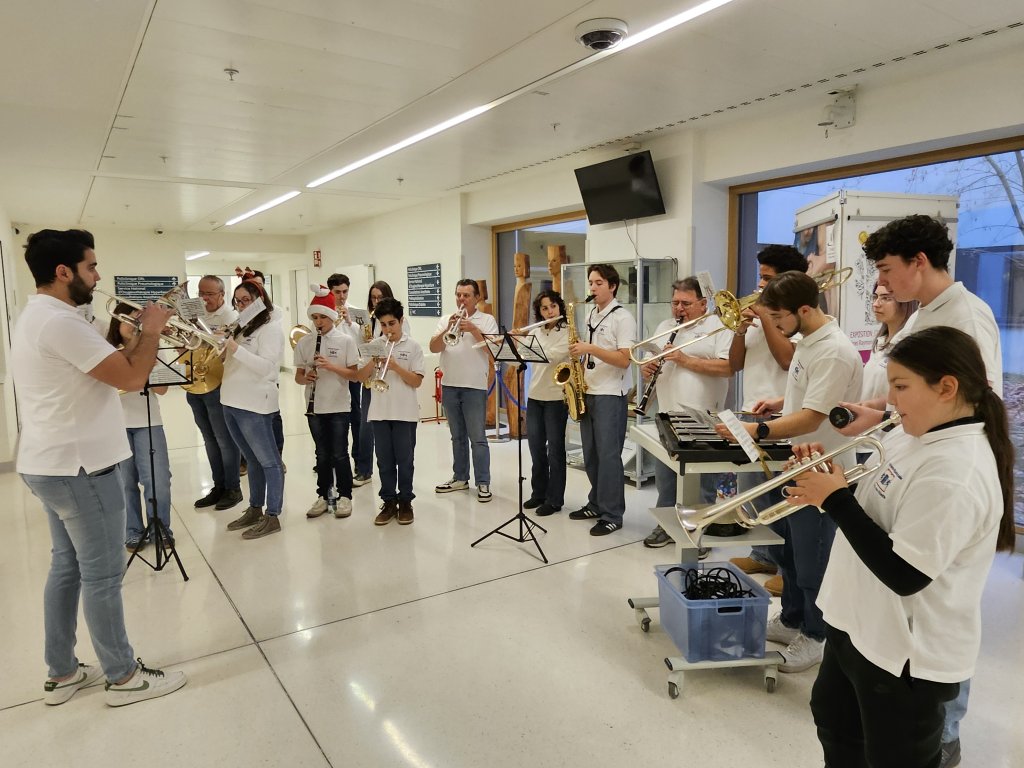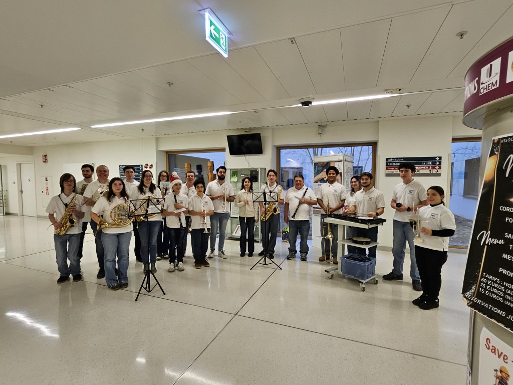Notre orchestre jeunes s’est rendu au CHEM pour le 24.12.2025 afin de jouer de la musique de noël pour les patients et le personnel de l’hôpital qui y sont présent pour ce jour de fête.